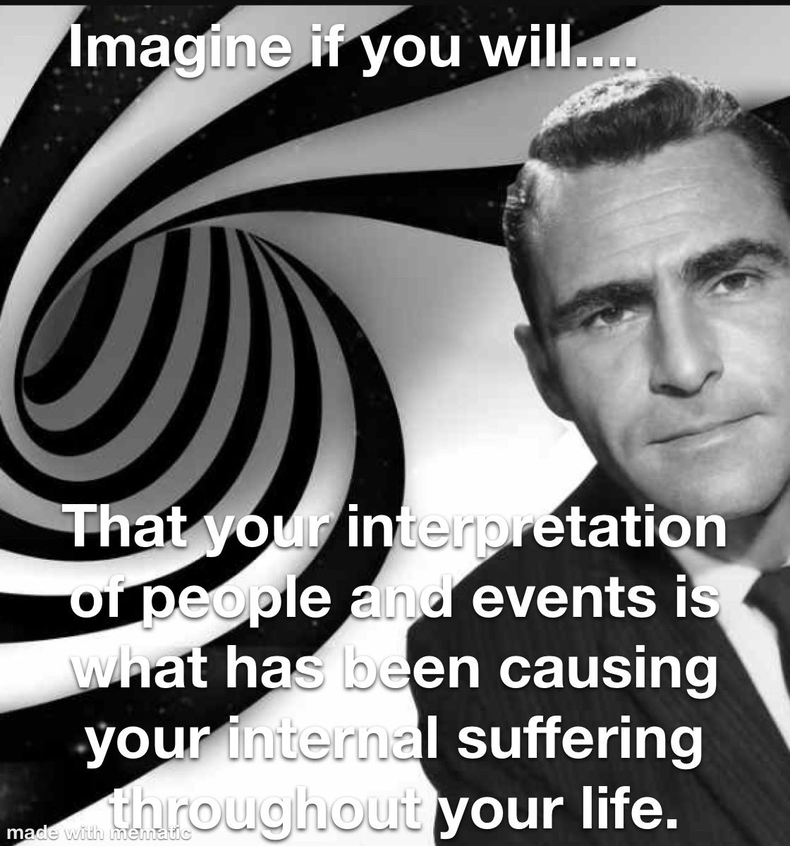 Just as a conflict with another person does not cause your inner turbulence. Your RESPONSE to the conflict is what causes your inner turbulence. Gosh, it’s so weird - twilight zone weird - to start to see that you’ve been doing it to yourself this WHOLE TIME. Right? This is where I am. (Insert twilight zone song here.)